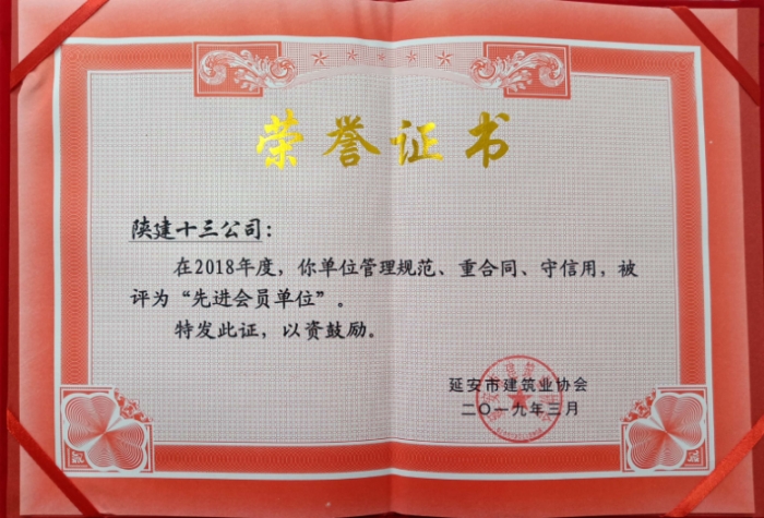 2018年度延安市建設工程質量安全生產先進集體