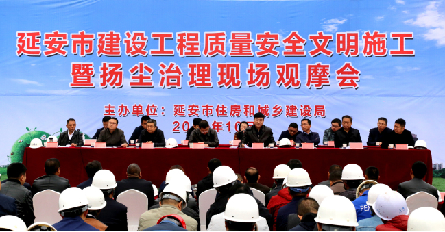 為進(jìn)一步強(qiáng)化質(zhì)量安全生產(chǎn)意識,深化文明工地創(chuàng)建活動,提高建設(shè)工程質(zhì)量安全管理水平,11月1日,延安市住建局組織召開了建筑工程質(zhì)量安全文明施工暨揚(yáng)塵治理現(xiàn)場觀摩會。市考核辦、文明辦、應(yīng)急管理局、環(huán)保局、新區(qū)管委會等13家負(fù)責(zé)同志出席會議。各縣區(qū)住建部門及市直施工企業(yè)、監(jiān)理單位負(fù)責(zé)同志共200余人參加了會議。