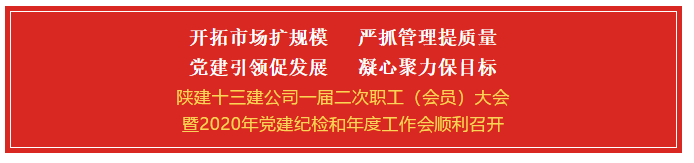 大會號召,公司全體職工要緊密團結在以習近平同志為核心的黨中央周圍,深入貫徹公司一屆二次職工(會員)大會暨2020年黨建紀檢和年度工作會議精神,凝心聚力,務實擔當,不負韶華,篤定前行,為實現陜建十三建公司高質量發展和“百億”十三建目標不斷奮進,為陜建集團實現整體上市和跨入世界500強再立新功。