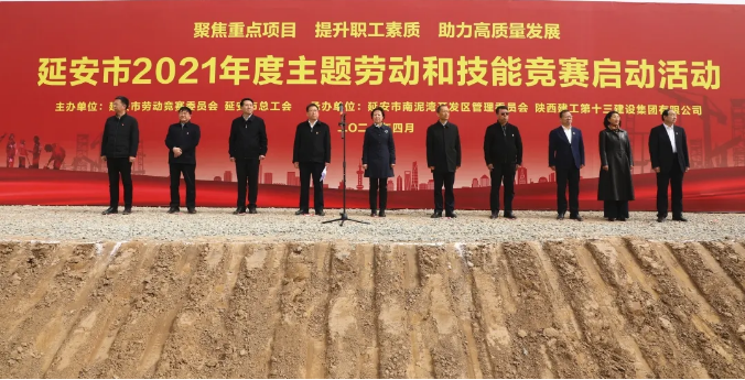 4月15日,延安市2021年度“聚焦重點項目 提升職工素質 助力高質量發(fā)展”主題勞動和技能競賽在陜建十三建集團承建的南泥灣金伯利農場項目工地舉行。