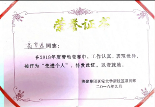 張保榮自畢業后已經扎根項目建設一線九個年頭。九年來,他兢兢業業、在自己的崗位上默默堅守,逐步成長為BIM技術專業人才。作為項目技術負責人,他積極發揮模范帶頭作用,今年,在參與金鴻·行知坊項目建設中,他充分利用BIM技術可視化、協調性、模擬性、優化性等特點,輔助項目管理,有效縮短了工期,節約了建造成本。2020年,他積極報名參加陜西省第五屆“秦漢杯”BIM應用大賽,他和隊員們關于延安大學新校區圖書館土建工程BIM技術應用的項目榮獲優秀獎。
