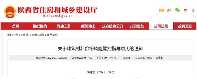 | 建筑材料價格風險如何管控,陜西省住建廳發布指導意見 |