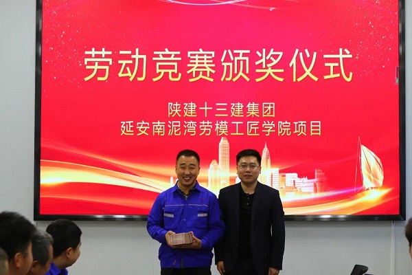 12月15日,陜建十三建集團延安南泥灣勞模工匠學院項目召開勞動競賽總結表彰大會。集團副總經理楊永宏,紀委書記、工會主席李靜,項目部全體管理人員及勞務工人代表參加。