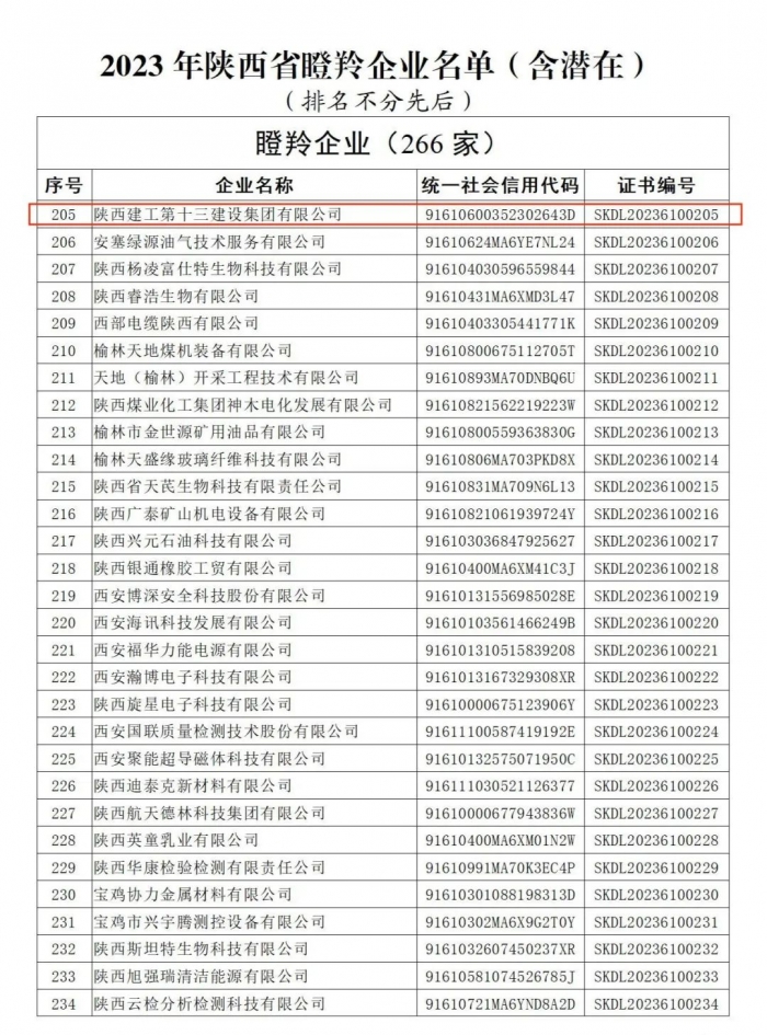 近日,陜西省科學技術廳公布了《2023年陜西省瞪羚企業》名單。陜建十三建集團被評為2023年陜西省瞪羚企業。